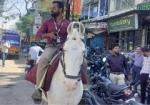 देवास में बैंक कर्मचारी का अनोखा अंदाज, घोड़े पर सवार...