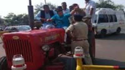 ट्रैक्टर से विधानसभा पहुंचे MLA, पुलिस से झड़प; ‘नारी शक्ति वंदन’ पर गरमाई राजनीति