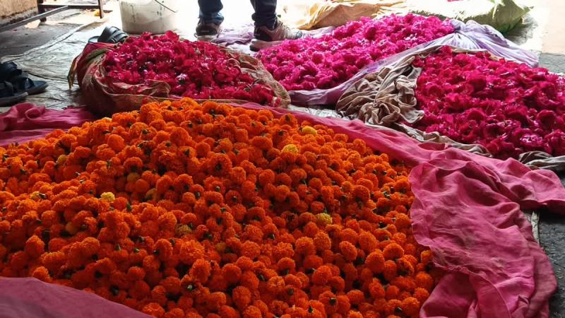 सभी किसान इसी मंडी में अपने फूल बेचने आते हैं. त्योहारी सीजन में किसान रात में ही गाड़ियों से फूल लेकर पहुंच जाते हैं. मंडी सुबह करीब 5 बजे खुलती है और 12 बजे तक किसान व्यापारियों को अपना फूल बेचकर चले जाते हैं. यहां लगभग 30 व्यापारी हैं जो फूलों की खरीद-बेच का काम करते हैं. सारा काम होलसेल में होता है."