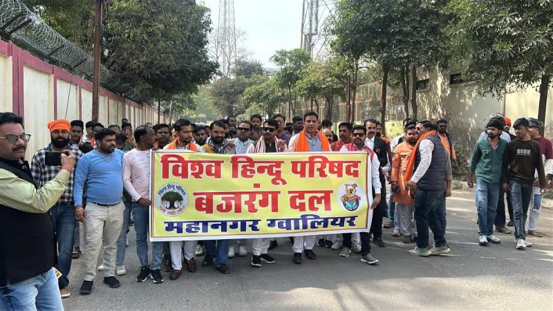 ग्वालियर: पिछले दिनों पकड़े गए गौवंश की हड्डियों से भरे ट्रक और ग्वालियर में संचालित हो रहे अवैध स्लॉटर हाउस के मुद्दे को लेकर हिंदू संगठन विश्व हिंदू परिषद और बजरंग दल ने गुरुवार को नगर निगम का घेराव कर इन मामलों को लेकर कार्रवाई की मांग की है. साथ ही 7 दिन में उचित कार्रवाई ना होने पर बड़े आंदोलन की चेतावनी भी दी है.