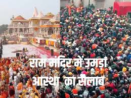 अयोध्या|रामनगरी अयोध्या में मर्यादा पुरुषोत्तम भगवान श्रीराम के जन्मोत्सव रामनवमी का पावन पर्व श्रद्धा और उल्लास के साथ मनाया जा रहा है। इस अवसर पर आस्था का जनसैलाब उमड़ पड़ा है। सुबह से ही श्रद्धालु सरयू नदी में स्नान कर पूजा-अर्चना कर रहे हैं। मंदिरों में दर्शन के लिए लंबी कतारें लगी हुई हैं।सरयू तट की बात करें तो लगभग 500 मीटर तक श्रद्धालुओं की भारी भीड़ देखी जा रही है। दूर-दराज से आए श्रद्धालु स्नान के बाद मंदिरों में दर्शन-पूजन कर रहे हैं। प्रशासन की ओर से सुरक्षा के व्यापक इंतजाम किए गए हैं।