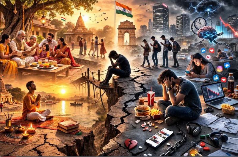 नई दिल्ली। आम तौर पर धारणा है कि भारत में मजबूत पारिवारिक बंधन, धार्मिक रीति-रिवाज और सामुदायिक जीवन पश्चिमी देशों में युवाओं को मानसिक स्वास्थ्य संकट से बचाते हैं लेकिन नए वैश्विक आंकड़ों से पता चलता है कि यह सुरक्षा कवज तेजी से कमजोर होने लगा है। एक ताजा रिपोर्ट से पता चलता है कि भारतीय युवा जितना माना जाता है, उससे कहीं ज्यादा संघर्ष कर रहे हैं। लोग रोजमर्रा की जिंदगी को कितनी अच्छी तरह से सामना कर पाते हैं, सोच पाते हैं, महसूस कर पाते हैं और काम कर पाते हैं। साथ ही उन सामाजिक और जीवनशैली संबंधी कारकों पर भी गौर किया जाता है जो इन नतीजों को प्रभावित करते हैं।