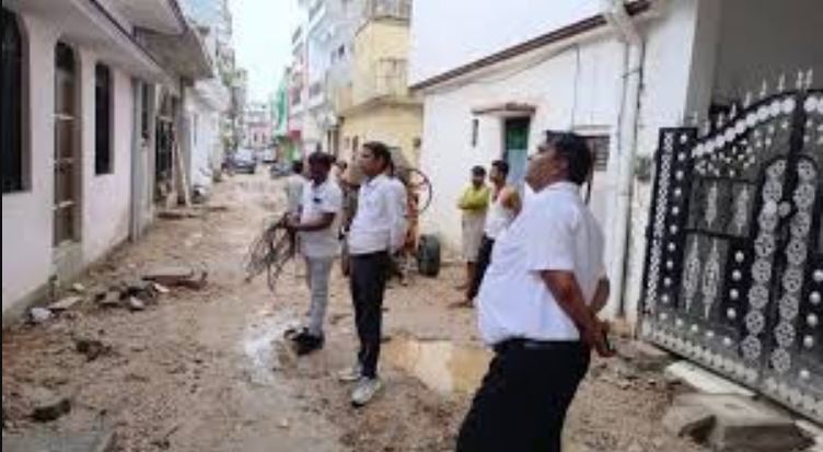 मक्का नगर में: कार्यपालन अभियंता विकास सिंह और कनिष्ठ अभियंता मधुर सेलेवाह।