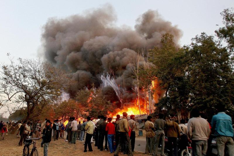 वाराणसी में भीषण आग, चार गैस सिलेंडर फटने से मची अफरा-तफरी