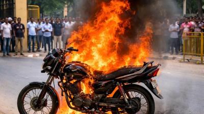जिला न्यायालय के पास चलती बाइक बनी आग का गोला, मचा हड़कंप -
