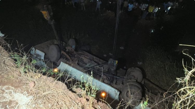 तीन लोग गंभीर रूप से घायल ,खाई में गिरा अनियंत्रित ट्रक